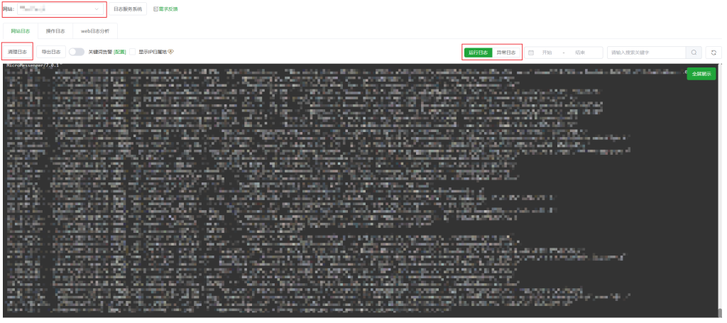 - 选择需要清理日志的网站,选择运行日志或者异常日志选项卡。